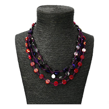 Lassen Sie sich von der Tiefe und dem Glanz unserer gedrehten Halskette "Éclat Nocturne" gefangen nehmen. Sie besteht aus mehreren Strängen, die mit flachen, facettierten Perlen in intensiven Farbtönen von Rot, Violett und irisierendem Schwarz bei der lilafarbenen Version und Graublau und irisierendem Rot bei der grauen Version verflochten sind. Es ist das perfekte Accessoire, um Ihre Outfits mit einem Hauch von geheimnisvollem Glamour zu erhellen. Ein einzigartiges Schmuckstück, das die Blicke auf sich zieht.