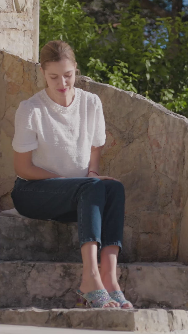 Los detalles metálicos, las flores en relieve, las joyas, etc. se fijan con pegamento, puntadas y cualquier otra cosa que los haga más sólidos. A pesar de ello, pueden estropearse. La causa principal es que la flor/joya/decoración se enganche en las correas de velcro. Para evitar este inconveniente, le recomendamos que tire de la lengüeta de cuero y no del adorno pegado a ella. ¡Esta pequeña precaución puede hacer que tus zapatos duren mucho más!