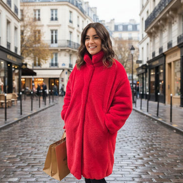 Descubra nuestro abrigo rojo de piel sintéticaDebbye, una prenda única y atrevida de color vivo que será su mejor aliada durante el invierno.