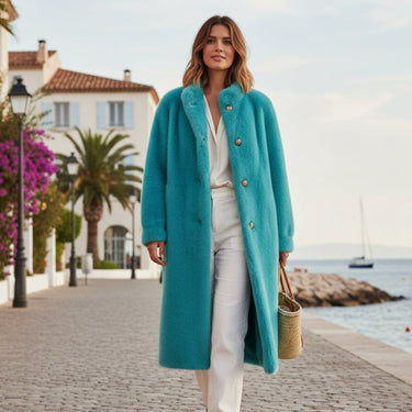 Découvrez notre manteau fausse fourrure Tiffany, cette pièce unique, audacieuse de couleur cyan, élégante et affirmée sera votre meilleure alliée lors de l'hiver. Stylée, confortable, classe et à la fois décontractée, vous n'aurez plus à choisir entre un look pointu ou un confort inégalé.