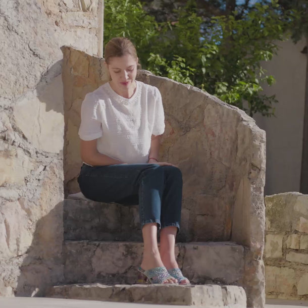 Metalen details, bloemen in reliëf, juwelen enz. worden vastgemaakt met lijm, stiksels en alles wat ze steviger maakt. Desondanks kunnen ze beschadigd raken. De belangrijkste oorzaak is dat de bloem/juweel/versiering blijft haken aan het klittenband. Om dit ongemak te voorkomen, raden we je aan om aan de leren tong te trekken en niet aan de versiering die eraan vastzit. Deze kleine voorzorgsmaatregel kan ervoor zorgen dat je schoenen veel langer meegaan!